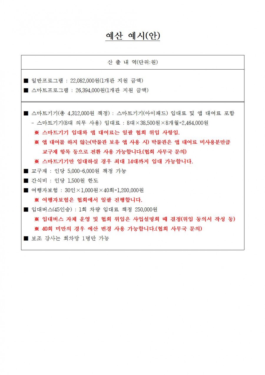 2015년 박물관 '길 위의 인문학' 사업 관련 추가 공지(예산 작성 시 참고 사항) 페이지 정보 작성자 관리자 작성일15-03-13 15:13 조회41,434회 댓글0건 관련링크 이전글 다음글 목록 본문 2015년 박물관 '길 위의 인문학' 사업 지원신청서 작성하시느라 노고가 많으십니다. 올려드린 예산안 공지 내용은 지출 예산안 작성 시 참고 내용이므로, 각 박물관에서 작성할 예산안과 동일하지 않아도 됩니다. 참고용이므로, 문의사항 있으시면 사무국으로 연락주시기 바랍니다. 033.762.1534 곽다정, 김미영 댓글목록 등록된 댓글이 없습니다. 이전글 다음글 목록