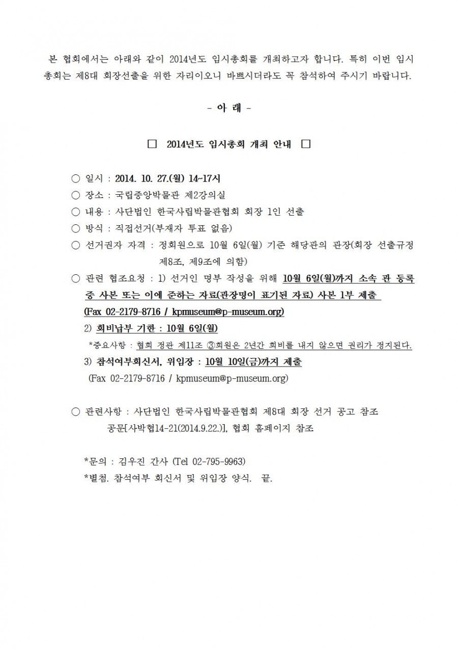 2014년도 임시총회 개최 안내