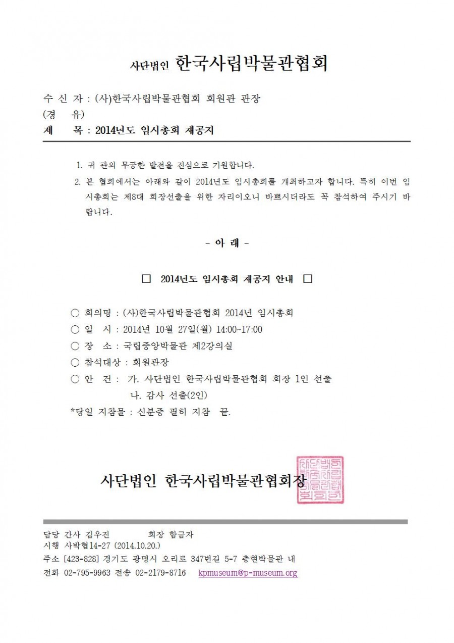 2014년도 임시총회 개최 안내(재공지)