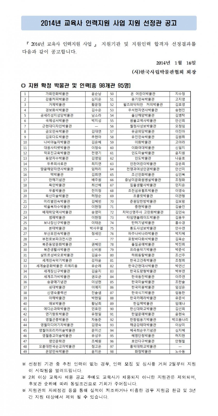 『 2014년 교육사 인력 지원사업 』 지원기관 선정 공고 페이지 정보 작성자 관리자 작성일14-01-16 14:05 조회37,808회 댓글0건 관련링크 이전글 다음글 목록 본문 댓글목록 등록된 댓글이 없습니다. 이전글 다음글 목록