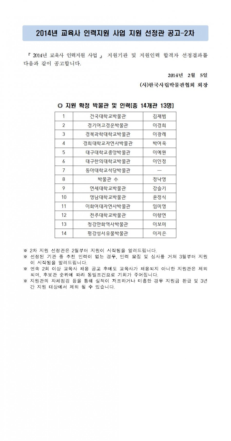 『 2014년 교육사 인력 지원사업 』 지원기관 선정 공고 - 2차 페이지 정보 작성자 관리자 작성일14-02-05 14:10 조회40,977회 댓글0건 관련링크 이전글 다음글 목록 본문 댓글목록 등록된 댓글이 없습니다. 이전글 다음글 목록